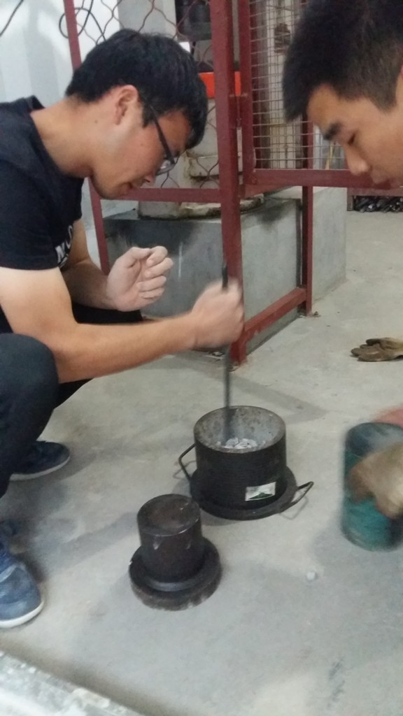 10月1日上午10:20,市政分公司試驗(yàn)員楊峰在進(jìn)行集料搗實(shí)密度試驗(yàn)。