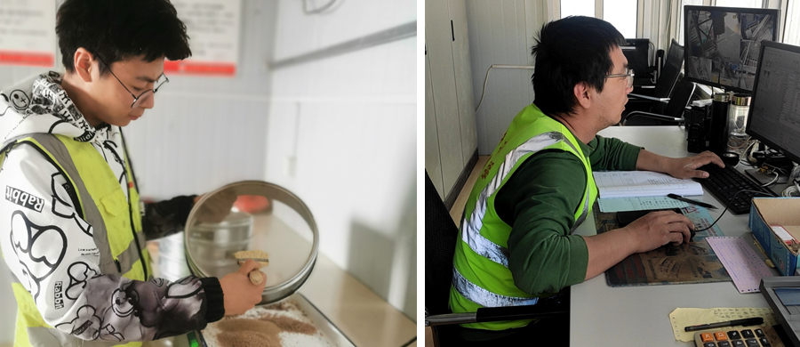 西里綜合場站試驗試驗室進行原材料檢測、西里綜合場站砼拌合站的操作員