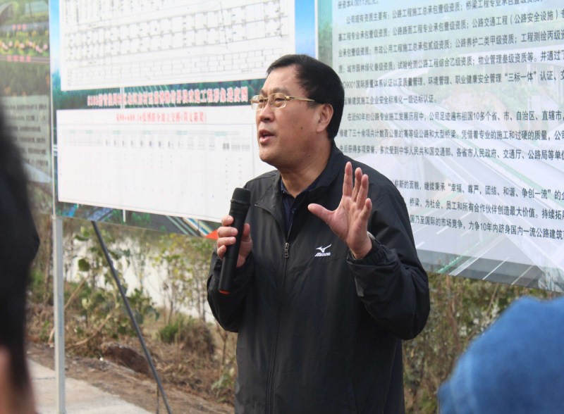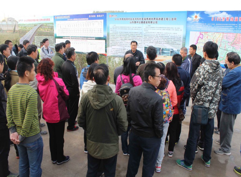 10月28日上午,淄博市交通局黨委書記、局長(zhǎng)翟乃利,淄博市公路局局長(zhǎng)王興及交通局其他領(lǐng)導(dǎo)分乘中巴車來到我公司參建的省道S102項(xiàng)目工地進(jìn)行實(shí)地調(diào)研。市重點(diǎn)工程辦公室謝國(guó)木首先向在場(chǎng)領(lǐng)導(dǎo)介紹了工程設(shè)計(jì)思路及建設(shè)的相關(guān)情況。